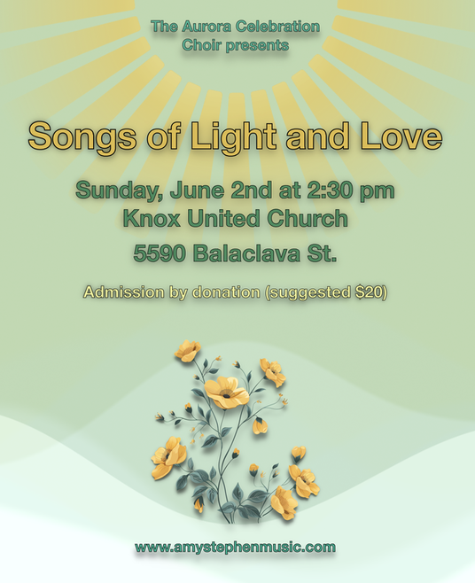 Guest conducting Aurora Celebration Choir on 2 June, 2024 (Sun) at 2:30pm at Knox United Church (5590 Balaclava St, Vancouver).