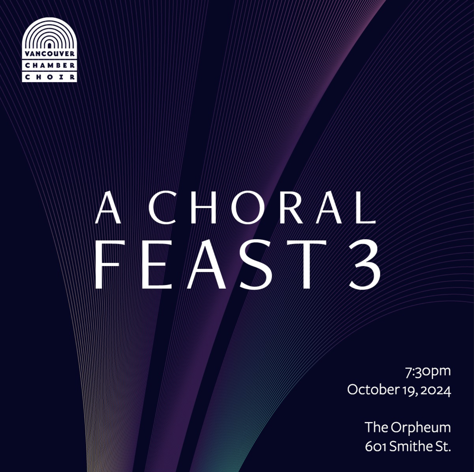 I am going to perform as a chorister with the Vancouver Bach Choir in the Choral Feast 3 concert, presented by the Vancouver Chamber Choir.