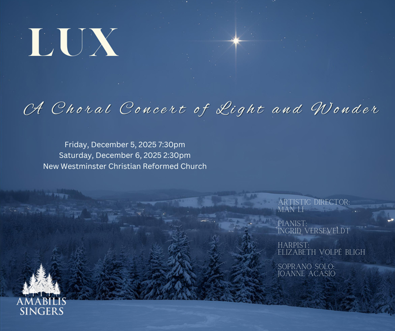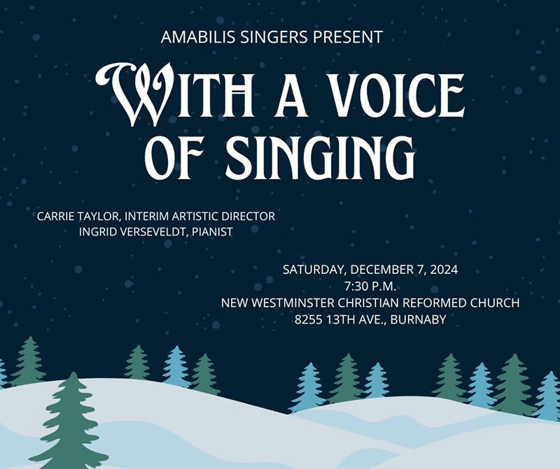 I will be performing as a guest conductor with the Amabilis Singers on December 7, 2024, at 7:30 PM at the New Westminster Reformed Church (8255 13th Ave, Burnaby).